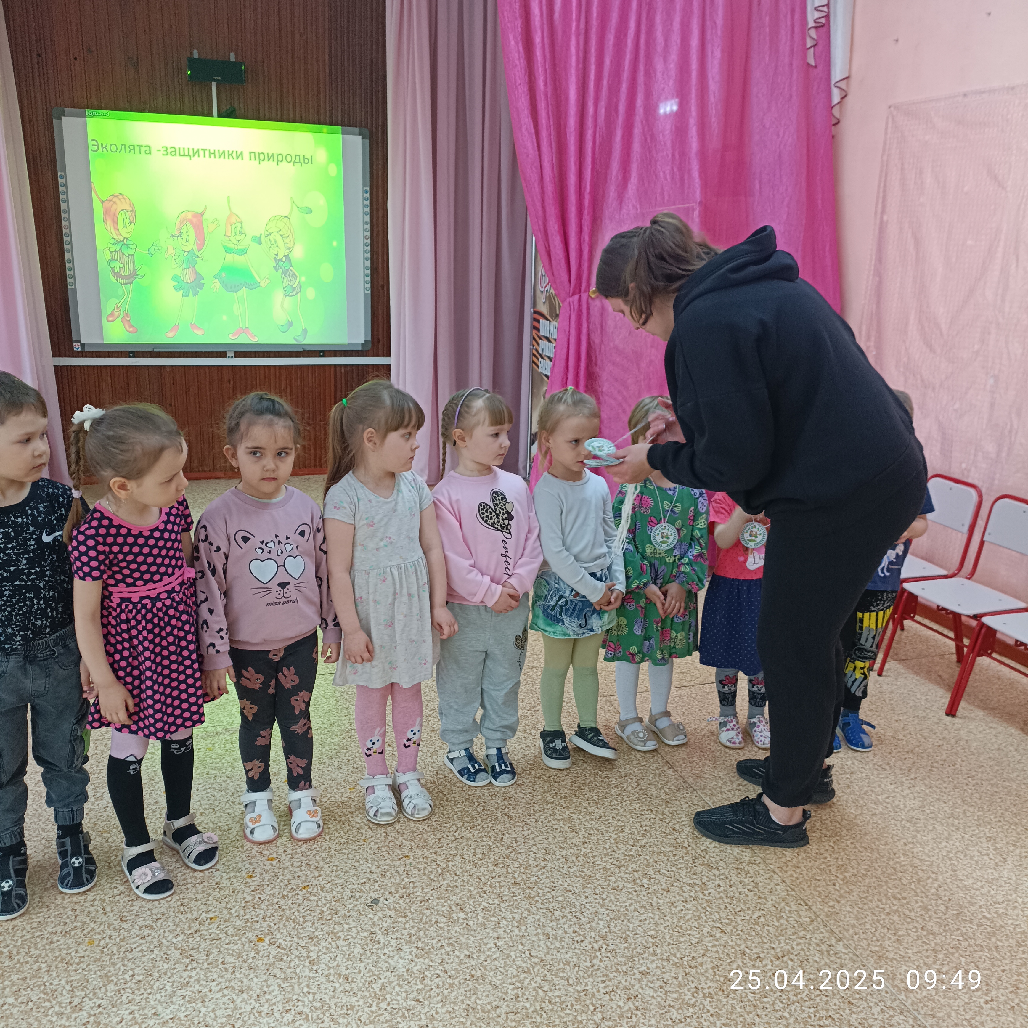 «День Эколят» является одним из мероприятий Всероссийских природоохранных социально-образовательных проектов. Ежегодно его отмечают 25 апреля во всех регионах России. В этот день и в нашем детском саду педагогами были организованы и проведены мероприятия. Основными целями мероприятий являлись: экологическое просвещение воспитанников, формирование у них ответственного экологического поведения. В старшей и подготовительной группах воспитанники вместе со сказочными героями "Эколятами" - друзьями и защитниками природы, закрепляли правила поведения в природе: как надо поступать и как поступать нельзя, просмотрели презентацию о загрязнении нашей планеты мусором, о источниках загрязнения. Ребята в своих рисунках помогли сказочным героям спасти нашу планету от загрязнения.