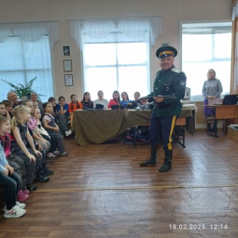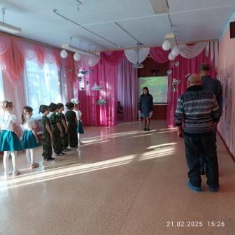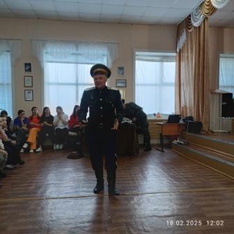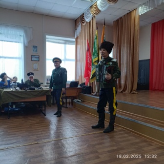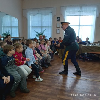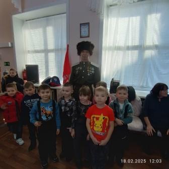 18 февраля воспитанники старшего возраста нашего ДОУ были приглашены на встречу с казаками Амурского окружного казачьего общества «Амурское казачье войско». Встреча прошла в теплой, дружественной обстановке. Подъесаул Г.И. Чадаев рассказал ребятам о жизни, быте и службе казаков. Показал главные казачьи символы: флаги, форму, папаху, кубанку, шашку, нагайку и другие виды оружия. Ребята играли в казачьи игры, слушали стихи и вместе с взрослыми пели «Катюшу».