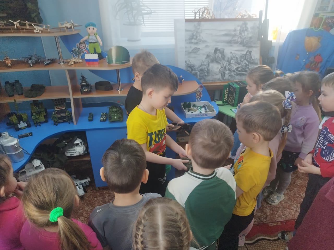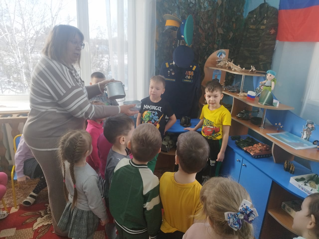 Исторически сложилось так, что любовь к Родине, патриотизм во все времена в Российском государстве были чертой национального характера. В настоящее время во многих молодых семьях вопросы воспитания патриотизма, гражданственности не считаются важными и, зачастую, вызывают лишь недоумение. С целью формирования чувства патриотизма у детей старшего дошкольного возраста, приобщение родителей к участию в жизни детского сада, с целью познакомить детей с историей и традицией праздника «23 февраля – День защитника отечества, в подготовительной группе ДОУ был оформлен мини музей. В музее мы разместили современное обмундирование российского солдата, ремень, противогаз, ордена и медали, макеты военной техники и др. Музей способствует совершенствованию образовательно- воспитательного процесса, повышению его эффективности в обучении и воспитании дошкольников, позволит значительно повысить качество и эффективность нравственного и патриотического воспитания.
