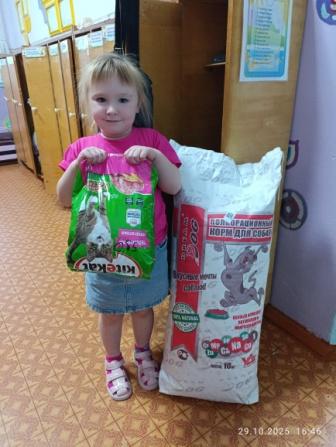 С 20 октября по 3 ноября в ДОУ, в рамках проекта "Лучики добра", прошла акция «Большая помощь маленькому другу!», по сбору кормов для бездомных животных, силами детей, родителей и сотрудников детского сада, для питомника с. Зельвино, были собраны и переданы корма, лекарства, ошейники, игрушки и другая гуманитарная помощь. От лица всего нашего детского сада хотим выразить искреннюю благодарность семьям, принявшим участие в мероприятии. Мы ценим каждого из вас и уверены, что благодаря таким инициативам наш детский сад становится местом, где воспитываются добрые и отзывчивые дети.